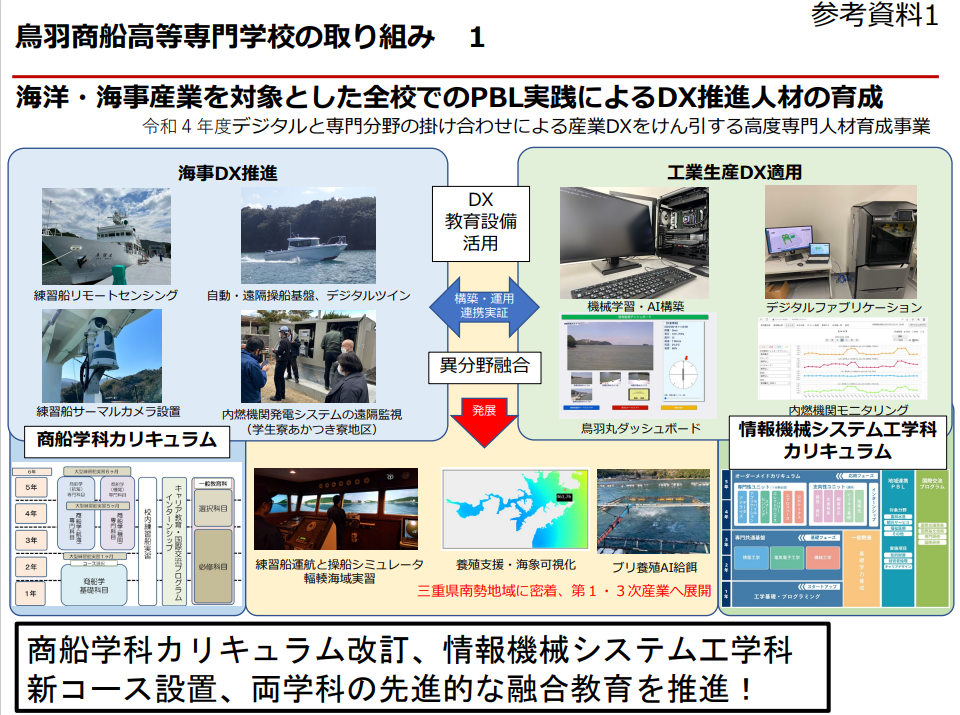 (令和7年11月12日掲載) 鳥羽商船高等専門学校は、令和7年11月、鳥羽市「企業版ふるさと納税」を活用した企業からの寄附募集を開始いたしました。 鳥羽市では、地域活性化を目的として、企業による寄附を通じた地域創生の取り組みを進めています。市内の事業者や団体が自ら提案したプロジェクトに対し、企業が支援を行うことで、地域と企業が連携しながらより効果的な地域づくりを目指しています。 鳥羽商船高専は、未来を担う「ものづくり」「ものはこび」の技術者を育成する、鳥羽市唯一の高等教育機関です。日本の貿易の約99%を支える海運に必要な海事技術者を育成する商船学科と、AI・半導体など日本の成長分野を牽引する技術者を育成する情報機械システム工学科の2学科で構成され、日本の産業と地域の未来を支える人財を育成しています。また、鳥羽商船高専は鳥羽市内外の事業者と連携し、地域課題の解決にも積極的に取り組んでいます。 このような教育・研究活動をさらに充実させ、鳥羽市から日本・世界で活躍する人財を育てていくため、本校は鳥羽市の企業版ふるさと納税を活用した寄附募集を開始いたしました。 鳥羽商船高専がおこなう地域連携や人財育成への取り組みに対し、ぜひご支援いただけますと幸いです。 鳥羽市の地域づくりに貢献するため、鳥羽商船高等専門学校が取り組む事例 持続可能な農水産業を実現するための取り組み ICT・AI活用による中小企業支援 練習船鳥羽丸を活用した取り組み 教育環境の充実 グローバル教育 など ◆鳥羽商船高等専門学校のこれまでの取り組み (画像をクリックすると詳細を拡大してご覧いただけます) 参考・その他 ◆鳥羽商船高等専門学校 鳥羽市「企業版ふるさと納税」のご案内 (画像をクリックすると拡大してご覧いただけます) ◆鳥羽市ウェブサイト 鳥羽市企業版ふるさと納税で鳥羽商船高等専門学校を応援しよう!|鳥羽市(外部サイト) 問い合わせ 本校の鳥羽市企業版ふるさと納税に関すること 鳥羽商船高等専門学校 総務課 企画・地域連携係 0599-25ー8402 記事・その他に関すること 鳥羽商船高等専門学校 総務課 総務係(広報担当) 0599ー25ー8013 soumu-soumu@toba-cmt.ac.jp 鳥羽商船高等専門学校の日常やお知らせをSNSで発信しています。