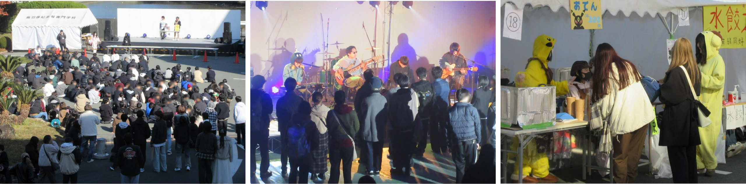 (令和7年12月9日掲載) 鳥羽商船高等専門学校は、令和7年12月6日(土)および7日(日)に「第60回海学祭」を開催しました。 海学祭は本校の文化祭で、学生で構成される学生会と海学祭実行委員が中心となって、イベント、ステージ企画、模擬店、展示などを企画・運営しています。 今回の海学祭は、60回目の節目を迎える記念の年でした。テーマは「$ailing」で、船出や挑戦、未来への旅立ちを象徴しています。創基150周年を迎えた本校が、伝統を大切にしながら新たな航路へ踏み出す姿勢を表現したものです。また、「$ailing」の“$”には、学生が積み重ねてきた経験を “価値” として示す意味も込められています。 両日とも天候に恵まれ、構内は多くの来場者でにぎわいました。ステージでは日頃の活動成果を披露する発表が行われ、模擬店では学生の工夫が光る商品が提供されました。情報機械システム工学科の学生が制作した注文・受け渡しシステムを導入した店舗もあり、本校らしさが感じられる企画が多数見られました。また、来場者参加型のイベントも複数実施され、家族連れやグループで楽しむ姿が多く見られました。 さらに、今年3月に竣工した練習船「鳥羽丸」による体験乗船・一般公開および企画展示も行われました。これらは本校学生団体「Tobamaru Project Team」が企画したもので、練習船の機能や魅力を知っていただく貴重な機会となり、多くの方にご参加いただきました。 第60回という節目の海学祭は、学生の主体的な取り組みと地域の皆さまの温かいご支援により、盛況のうちに終了しました。開催にあたりご支援・ご協力いただいた皆さま、ならびにご来場いただいた皆さまに心より御礼申し上げます。 概要 第60回海学祭「$ailing」 ◆日時 令和7年12月6日(土)・7日(日) ◆場所 鳥羽商船高等専門学校 (三重県鳥羽市池上町1番1号) ◆企画・運営 学生会 海学祭実行委員 ◆参考 鳥羽商船高等専門学校学生会ウェブサイト 第60回海学祭公式サイト Tobamaru Project Teamウェブサイト この記事をシェアする 関連する記事 お知らせ|第60回海学祭を実施します 12/6・7 | 鳥羽商船高等専門学校 練習船鳥羽丸の体験乗船・一般公開を実施します(12/6・7) | 鳥羽商船高等専門学校 問い合わせ 記事・その他に関すること 鳥羽商船高等専門学校 総務課 総務係(広報担当) 0599ー25ー8013 soumu-soumu@toba-cmt.ac.jp 鳥羽商船高等専門学校の日常やお知らせをSNSで発信しています。