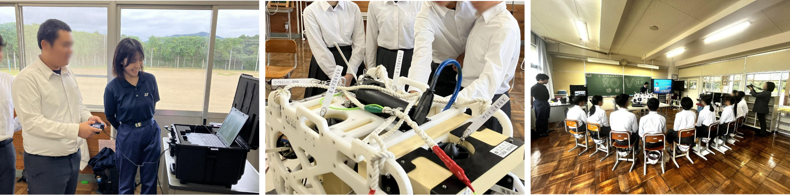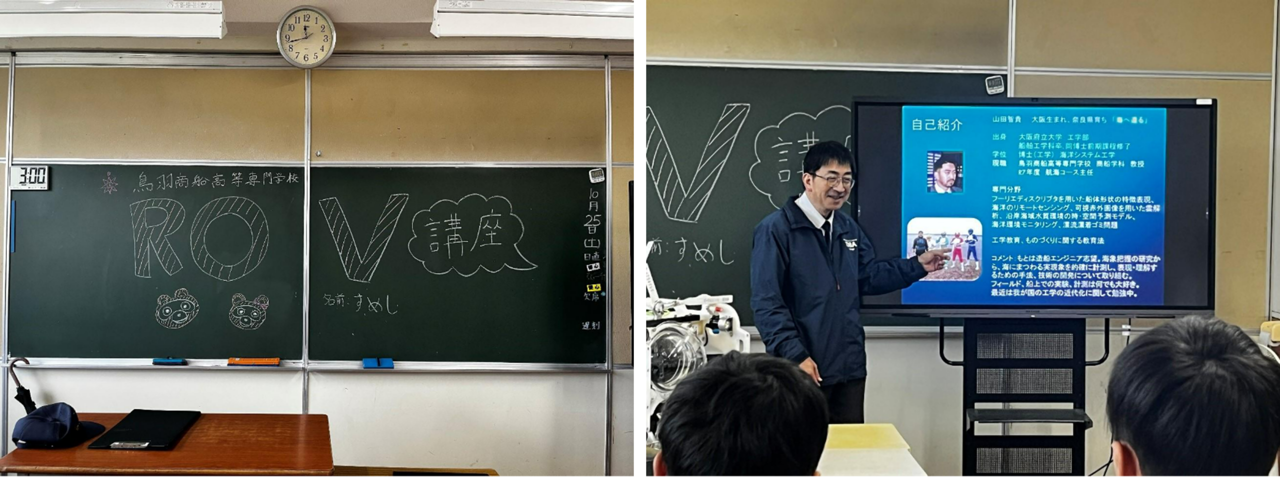 (令和7年12月10日掲載) 鳥羽商船高等専門学校は、令和7年10月25日(土)、鳥羽市立答志中学校において出前授業「海の環境とROV入門」を実施しました。 本校の出前授業は、小中学校の通常カリキュラムでは扱わない高専ならではの学びを体験してもらい、児童・生徒の将来の進路選択や学習意欲の向上につなげることを目的としています。 今回実施した「海の環境とROV入門」では、商船学科の山田智貴教授が講師を務めました。ROVとは“Remotely Operated Vehicle”の略称で、遠隔操縦無人潜水艇と呼ばれる機器です。ケーブルを介して操縦し、搭載されたカメラやセンサーから水中の様子をリアルタイムでデータを取得・記録できるほか、装着したアームを用いて物体を回収するといった作業を行うこともできます。授業では、まずROVの構造や機能について解説した後、答志中学校の生徒の皆さんに実際に操作してもらいました。コントローラはゲーム用と同様の形状であるため、生徒はすぐに操作に慣れ、楽しそうに操縦体験に取り組んでいました。 本校では、このように高専の専門性を活かした出前授業を継続して実施しています。今後も地域の教育機関と連携し、「鳥羽商船高等専門学校ならではの学び」を広く提供してまいります。 ※鳥羽商船高等専門学校で実施している出前授業は、下記URLからご覧ください。 出前授業 | 産学連携・地域交流 | 鳥羽商船高等専門学校 概要 出前授業「海の環境とROV入門」 ◆日時 令和7年10月25日(土) ◆場所 鳥羽市立答志中学校 (三重県鳥羽市答志町2220-5) ◆講師 山田智貴教授(商船学科) ◆講座名 海の環境とROV入門 この記事をシェアする 関連する記事 出前授業「LEGO ロボットを作ろう!」を実施しました | 鳥羽商船高等専門学校 本校の出前授業・公開講座に関すること 出前授業 | 産学連携・地域交流 | 鳥羽商船高等専門学校 2025年度公開講座 | 公開講座 | 産学連携・地域交流 | 鳥羽商船高等専門学校 問い合わせ 出前授業・公開講座に関すること 鳥羽商船高等専門学校 総務課 企画・地域連携係 0599―15-8402 記事・その他に関すること 鳥羽商船高等専門学校 総務課 総務係(広報担当) 0599ー25ー8013 soumu-soumu@toba-cmt.ac.jp 鳥羽商船高等専門学校の日常やお知らせをSNSで発信しています。