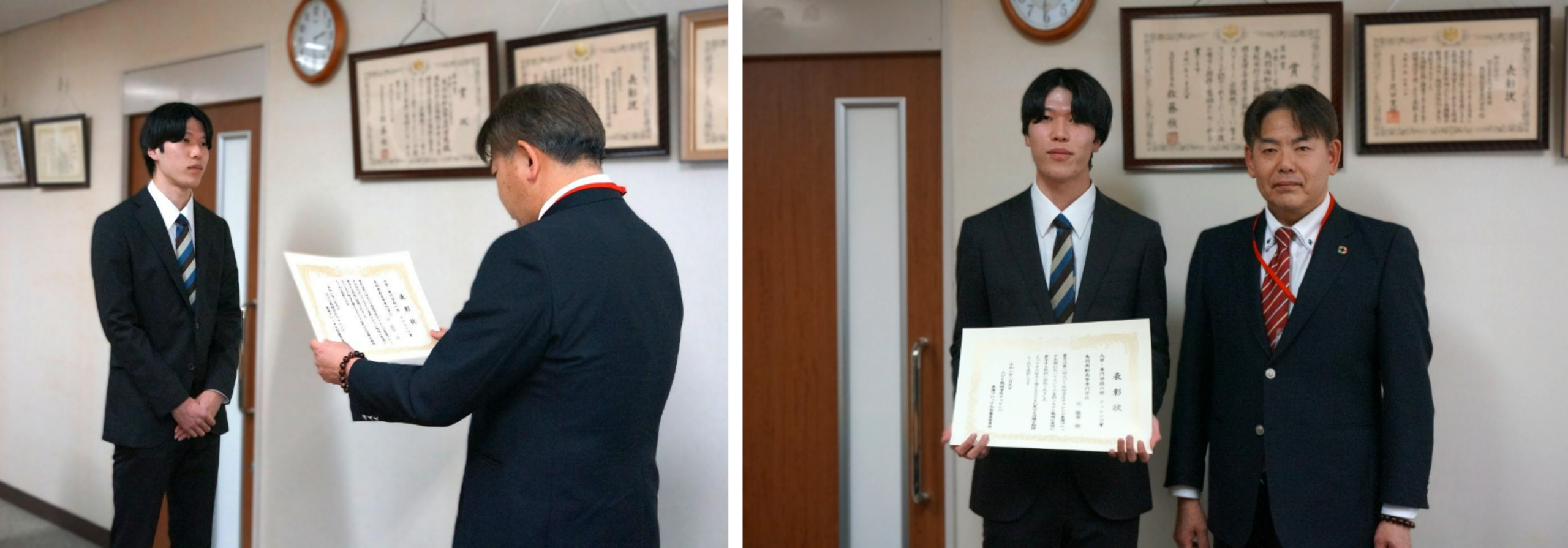 (令和8年2月24日掲載) 鳥羽商船高等専門学校情報機械システム工学科5年生の学生が、農林水産省東海農政局主催「第2回みどり戦略学生チャレンジ東海ブロック大会」に応募し、チャレンジ賞を受賞しました。これに伴い、令和8年2月4日(水)、東海農政局三重県拠点の地方参事官が本校を訪問し、学生に賞状を授与しました。 農林水産省は、2021年に「みどりの食料システム戦略(以下、みどり戦略)」を策定し、農林水産業の生産力向上と持続可能性の両立を図ることを目指しています。その一環として、将来を担う若い世代の環境配慮型の取り組みを促進するため、「みどり戦略学生チャレンジ」を開催し、農業大学校や農業高校を含む大学生・高校生等の個人やグループに対し、「みどりの食料システム戦略」に基づく活動を実践する機会を提供しています。* 今回、本校学生が応募した取組は「画像解析による生ごみの分別と堆肥化を行うコンポスターの開発」です。日本では焼却ごみの排出量が多く、焼却に伴う二酸化炭素排出など環境負荷の大きさが課題となっています。学生は、特に環境負荷の大きい「生ごみ」に着目し、適切な分別と堆肥化によって地域資源として有効活用することを目的に、システムの開発に取り組みました。 当日、地方参事官は「若者からの応募は大変うれしく思います。すばらしい取組ですので、今後もぜひ継続して頑張ってください」と激励し、「次回開催も決定していますので、より多くの学生に応募してほしい」と呼びかけました。賞状を受け取った学生は、「このように表彰していただき大変嬉しく思います」と喜びの表情を見せました。 今後も本校は、環境や持続可能性といった社会的課題に向き合い、実践的な学びを通して次代を担う技術者の育成に取り組んでまいります。 *参考 みどりの食料システム戦略トップページ:農林水産省 みどり戦略学生チャレンジ:農林水産省 ※受賞学生は、令和8年2月9日(月)開催の第2回みどり戦略学生チャレンジ東海ブロック大会の表彰式に出席できないことから、今回の表彰式が行われました。 概要 第2回みどり戦略学生チャレンジ東海ブロック大会 チャレンジ賞の表彰 ◆日時 令和8年2月4日(水) 14:30~ ◆場所 鳥羽商船高等専門学校 特別会議室 ◆受賞 第2回みどり戦略学生チャレンジ東海ブロック大会 チャレンジ賞 (情報機械システム工学科5年生) ◆参加者 農林水産省東海農政局三重県拠点 鳥羽商船高等専門学校 情報機械システム工学科 受賞学生 鳥羽商船高等専門学校 情報機械システム工学科長 白石和章教授 ◆参考 みどり戦略学生チャレンジ東海ブロック大会:東海農政局 東海ブロック大会参加チームのポスター集(PDF) ※本校学生の取り組みは19ページ目に掲載されています。 ◆次回のご案内 チラシ_第3回みどり戦略学生チャレンジ東海ブロック大会 この記事をシェアする 問い合わせ 記事・その他に関すること 鳥羽商船高等専門学校 総務課 総務係(広報担当) 0599ー25ー8013 soumu-soumu@toba-cmt.ac.jp 鳥羽商船高等専門学校の日常やお知らせをSNSで発信しています。